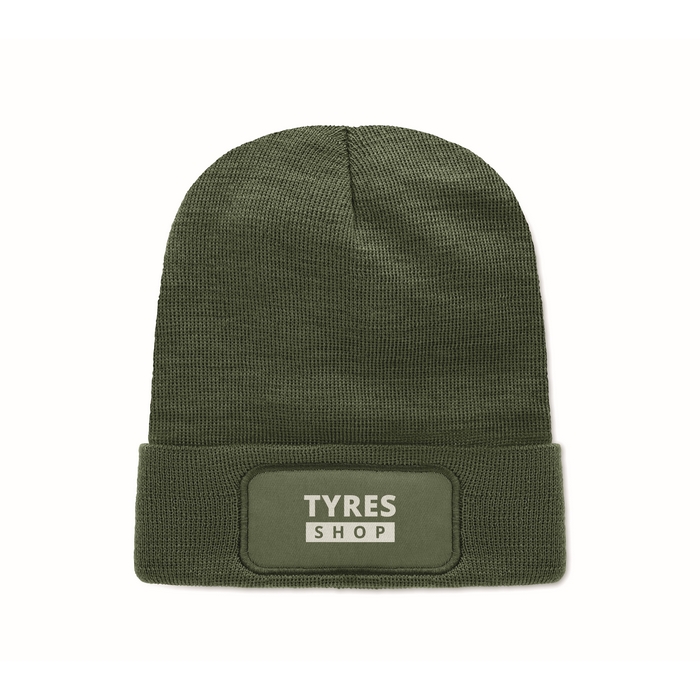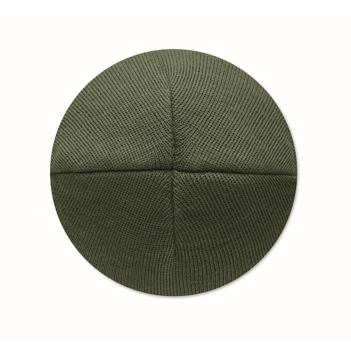Unisex knitted beanie in soft stretchable RPET polyester with cuff and patch. Dimensions: O21 x 23 cm