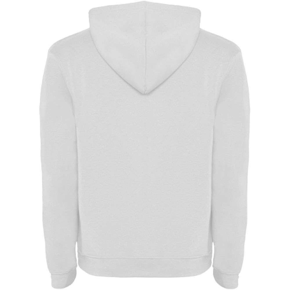 Two-colour hoodie with double fabric, contrasting adjustable drawcord, reinforced covered seams in collar and kangaroo style pocket. 1x1 elastane rib in cuffs and waistband. Removable label. The model is 185 cm and is wearing size M.
