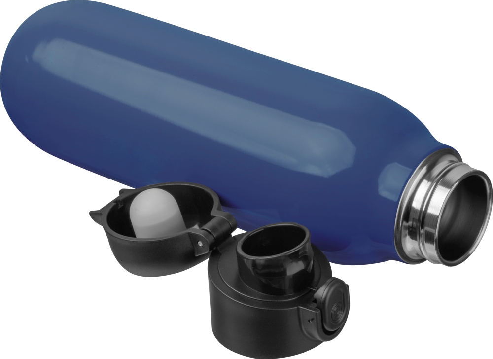 Double-walled vacuum stainless steel bottle with 500ml capacity. The leak-proof lid opens with a click. Dimensions: o 6,5 x 25,7 cm