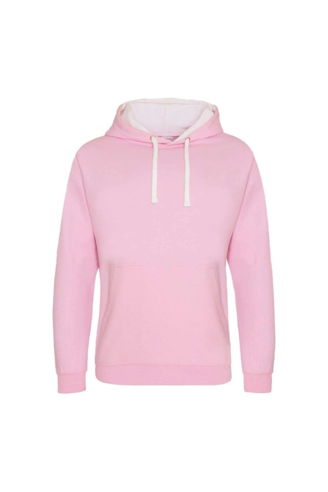Varsity hoodie JUST HOODS, Baby Pink/Arctic White, size XL