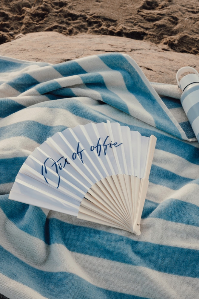 Stay cool with this portable hand fan. Featuring the playful ‘Out of office’ message, it’s a fun reminder that it’s time to relax. Perfect for the beach, poolside, or on any hot summer day. This fan combines functionality with charm. Crafted from FSC® certified bamboo and polyester.Dimensions: 43 x 23 x 2.5 cm