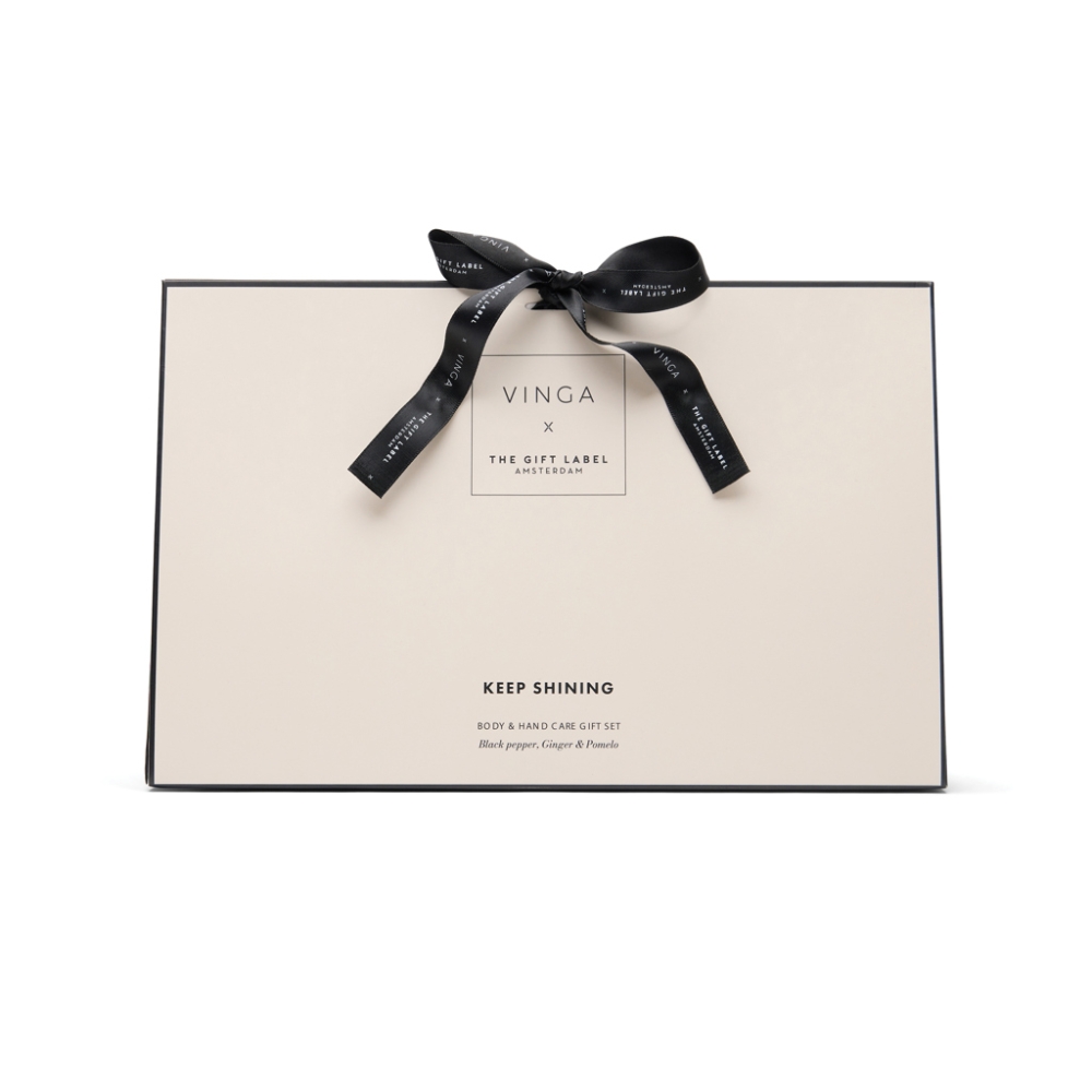 Nurture body, hands and mind. This scented set includes four 100?ml bottles: body wash, body lotion, hand soap, and hand lotion. With the warm and zesty aroma of black pepper, ginger and pomelo, this body and hand care set delights the senses and adds a visually appealing touch to your bathroom. Elegantly packed in a gift envelope in cream white and black.Dimensions: 29 x 9 x 19 cm