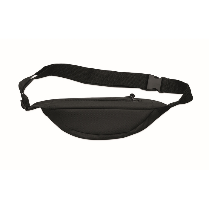 Waist bag in 600D RPET polyester with zippered main compartment and hidden zippered back compartment. Dimensions: 24 x 12 x 6 cm