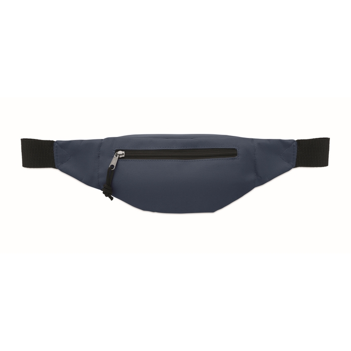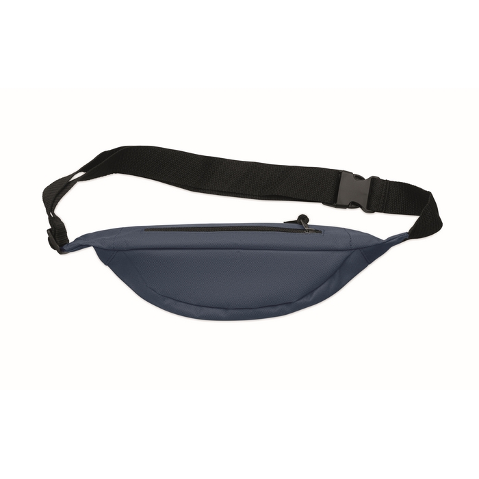 Waist bag in 600D RPET polyester with zippered main compartment and hidden zippered back compartment. Dimensions: 24 x 12 x 6 cm