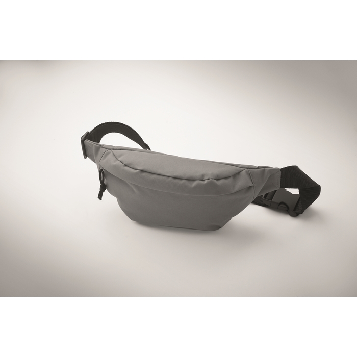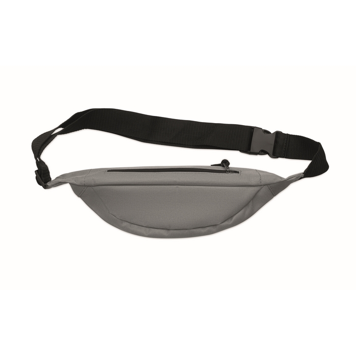 Waist bag in 600D RPET polyester with zippered main compartment and hidden zippered back compartment. Dimensions: 24 x 12 x 6 cm