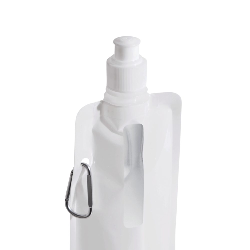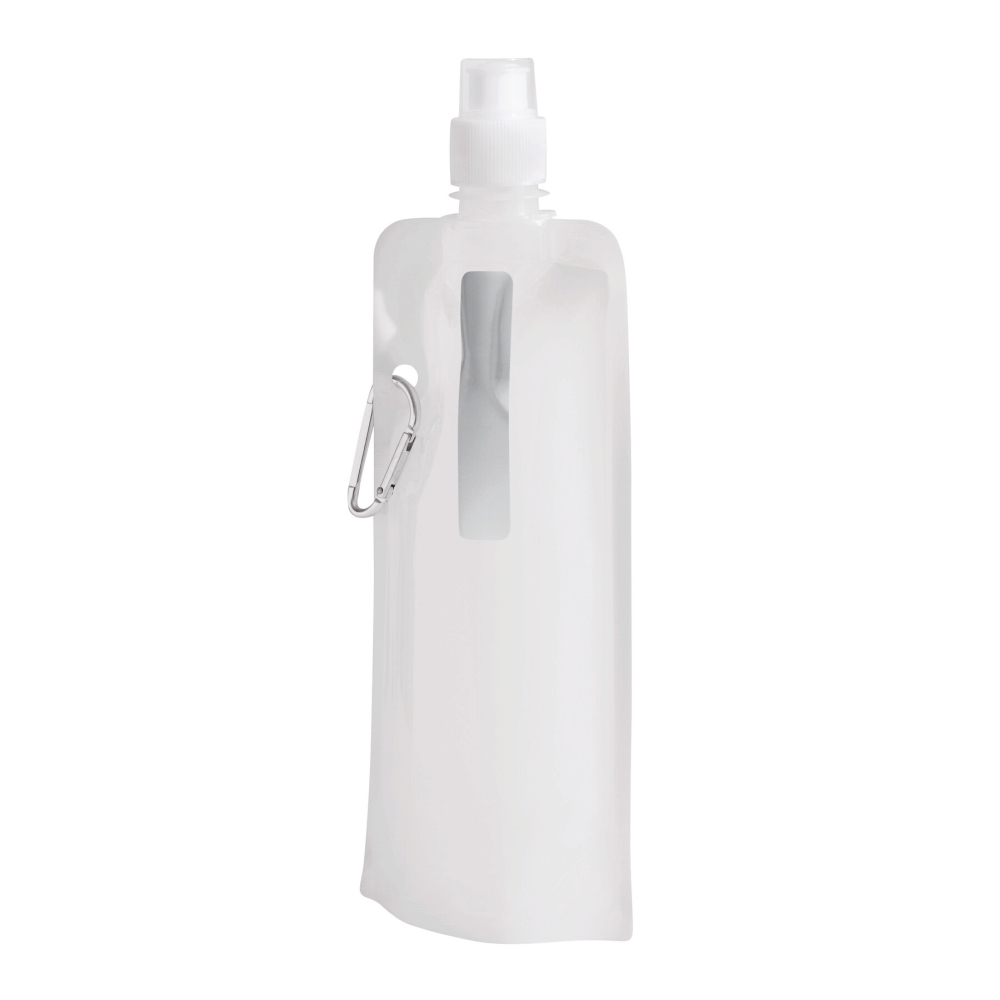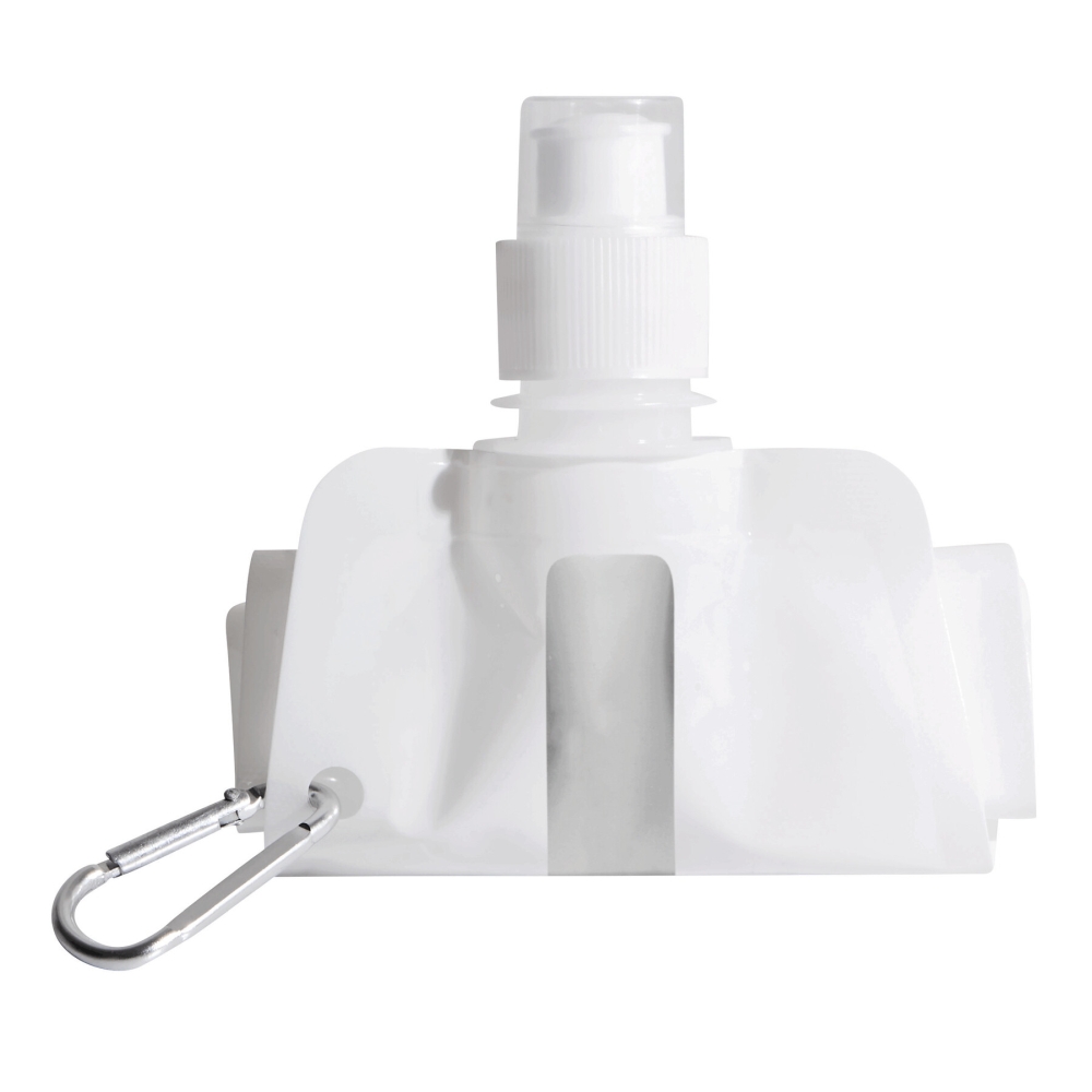 Water bag: foldable, can be rolled up when empty, transparent push-pull cap, with carabiner (the carabiner is NOT suitable for climbing), capacity approx. 400 ml. Dimensions: 11,8 x 26,5 cm