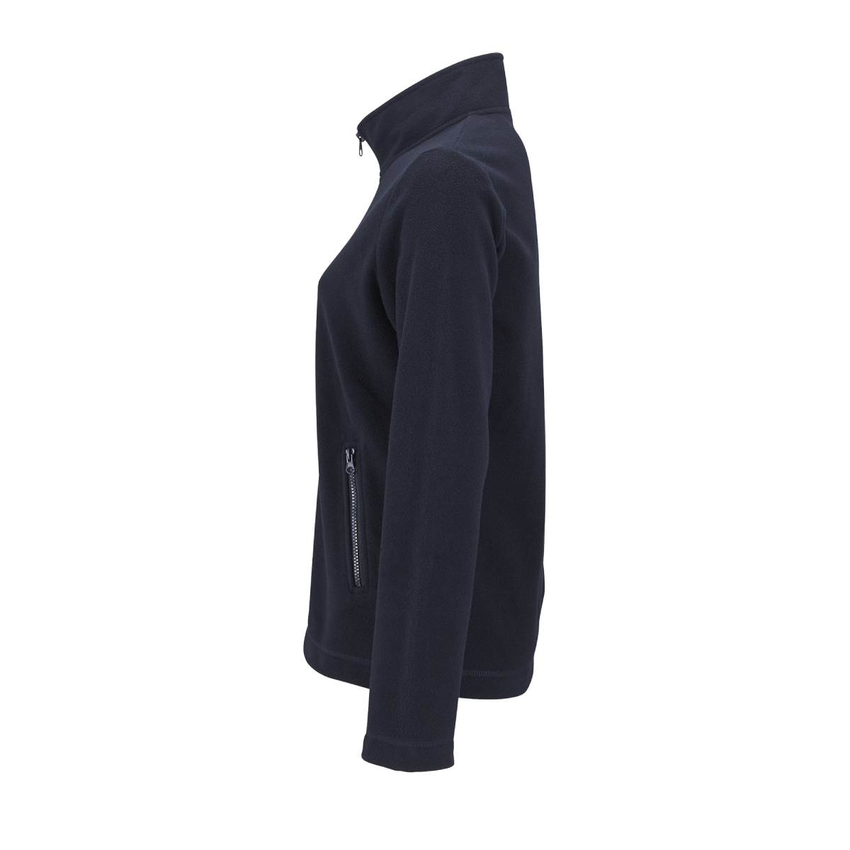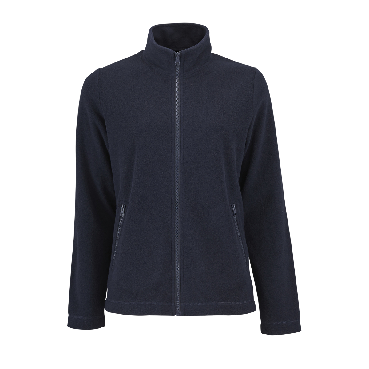 Womens fleece jacket. 100% polyester, fleeece 220. High zip collar. 2 zip pockets