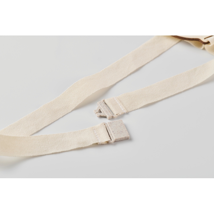Wooden medal with cotton strap and wheat straw/PP buckle. Dimensions: DIA7 x 0.4 cm