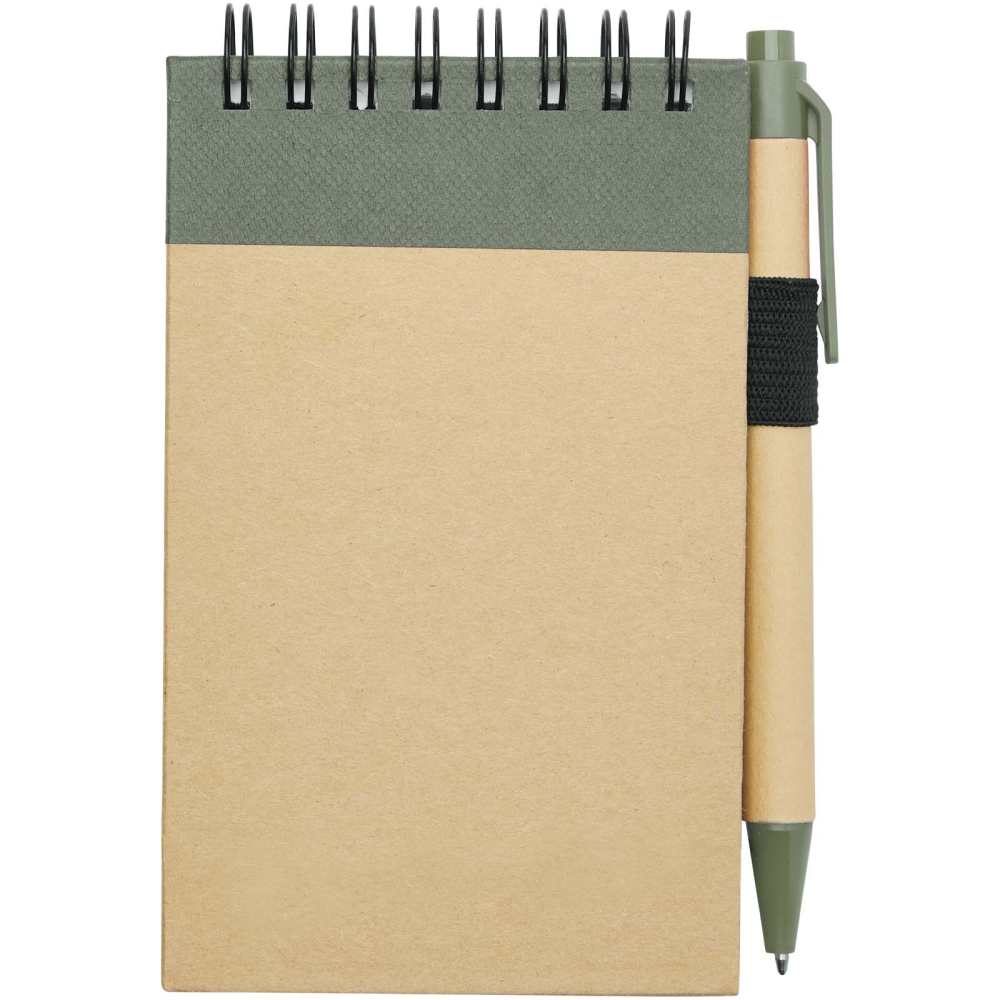Zuse A7 recycled jotter notepad with pen, heather green