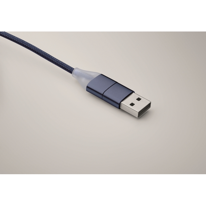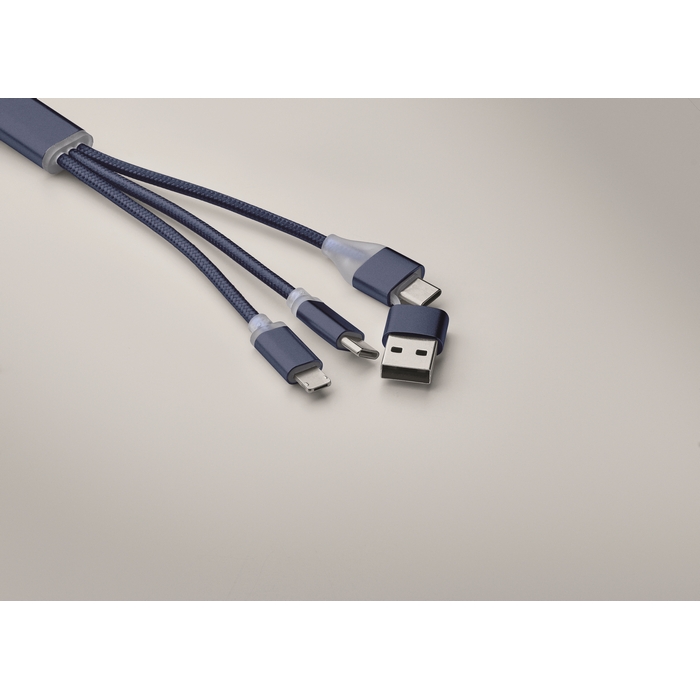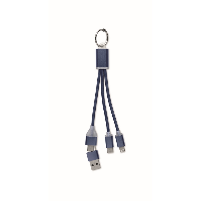 Key ring with charging cable with input: 2-in-1 type-C & type-A and micro-B (2 in 1 pin) and Type C output. Dimensions: 17 x 2,4 x 1,7 cm