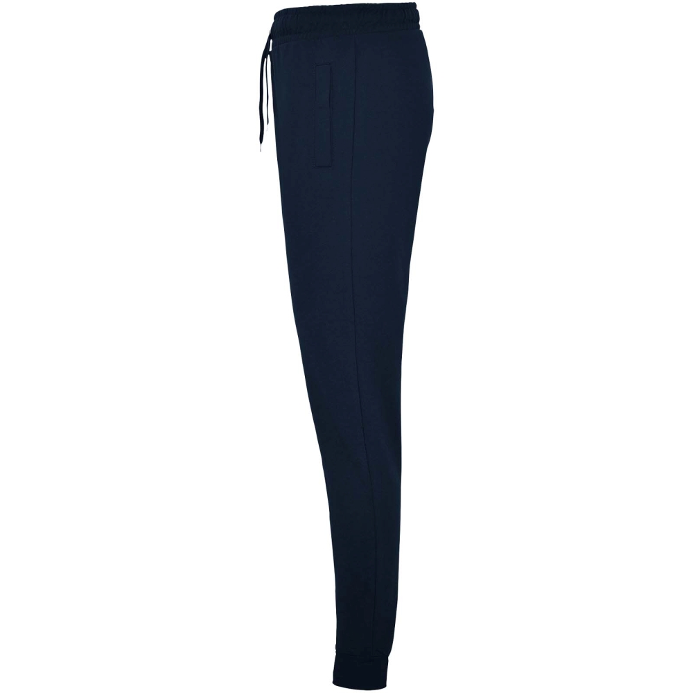 Sports trousers with wide adjustable waistband, drawcord, fitted cuffs on legs, reinforced seams, ribbed side pockets and corner back pocket with stitched view. Removable label.