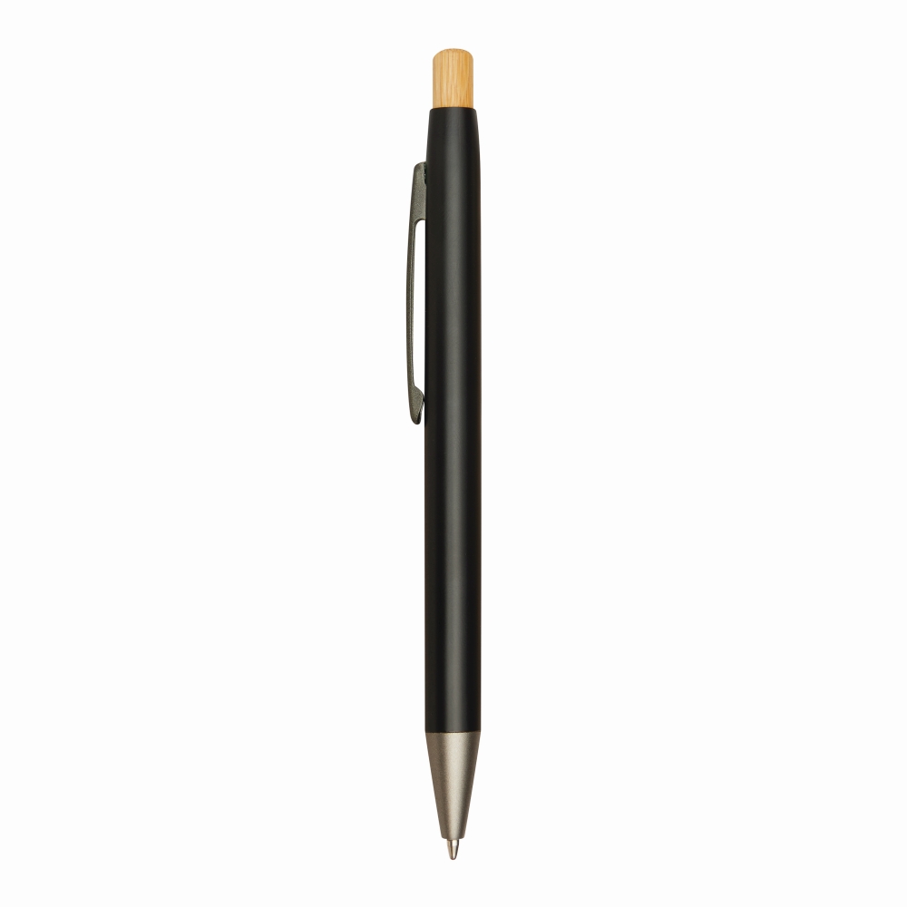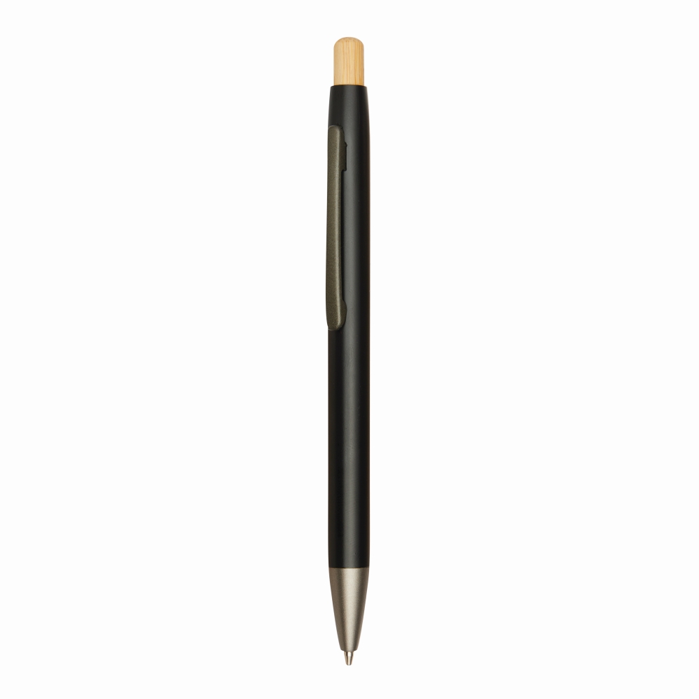 Aluminum ballpoint pen, matt, made of recycled aluminium, push button mechanism, blue ink. Dimensions: 14 cm