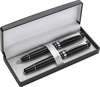 Pen set consisting of an aluminium ballpen and rollerball with black ink, supplied in a gift box. Product size: 17,8 x 7,7 x 3,3 cm