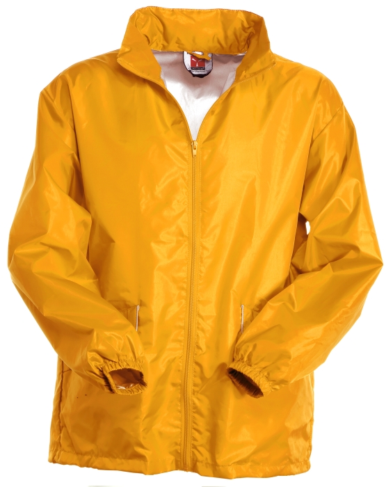 Unisex waterproof jacket, foldaway hood, elasticated cuffs, two pockets with Velcro, reflex profiles and insert on the back, inner: unlined, silver-effect (except for the version in yellow). Individually packed in a drawstring bag with side strap.