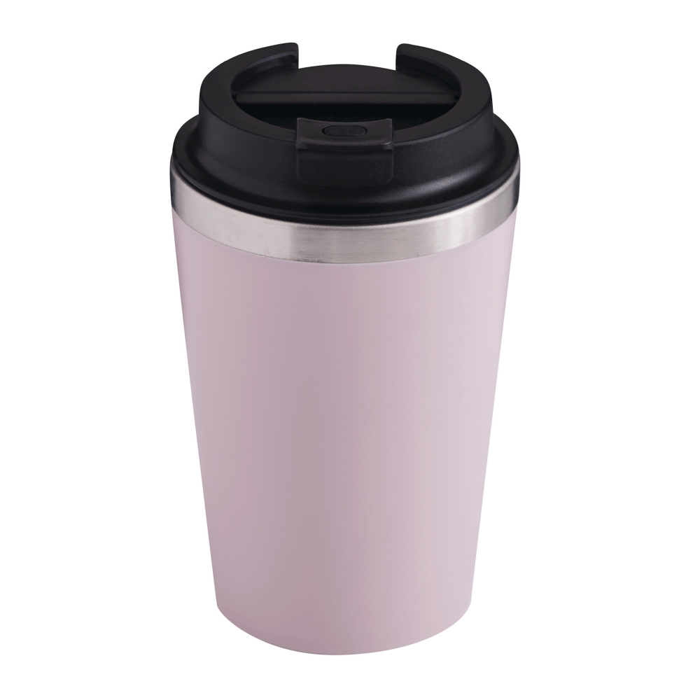 Double-walled travel mug: made of stainless steel on the inside and plastic on the outside, secure screw-on plastic lid with integrated drinking opening and silicone seal, capacity approx. 350 ml, keeps warm for approx. 2 hours and cold for up to 4 hours. Dimensions: O9 x 15 cm
