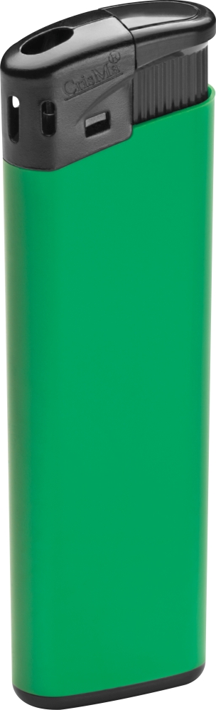 Electronic plastic lighter with flame regulation. Dimensions: 2,9 x 1,6 x 8,6 cm