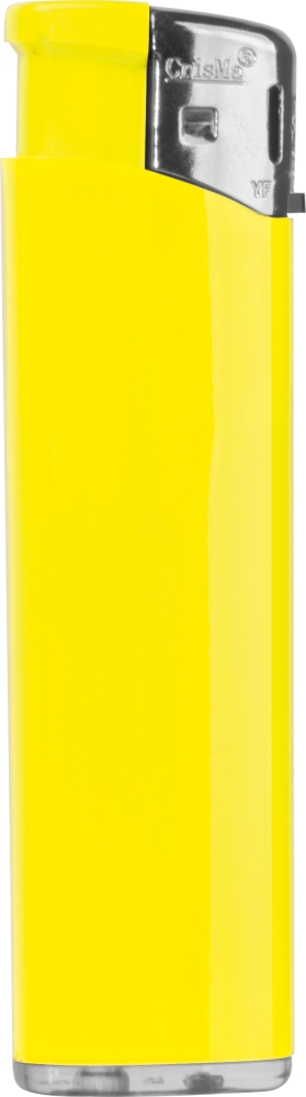 Electronic lighter with infinitely variable flame regulation. The lighter is refillable. Dimensions: 2,2 x 1 x 8,2 cm