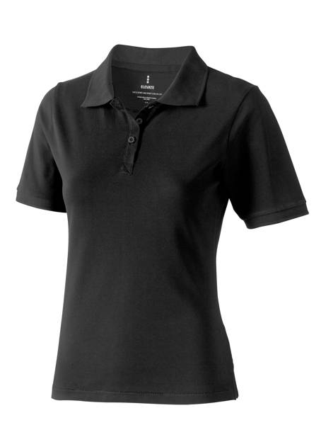 Calgary ladies polo. Pre-shrunk. 1x1 rib collar and cuffs. Tonal logo print at back. Forwarded shoulder seam with chain stitching. Satin neck tape. Side slit with satin tape on inside. Mens and Kids 2 button placket with engraved buttons. Ladies 3 button placket with engraved buttons. Corporate yet casual polo. Pick-Stitch details. Pique knit, 100% Cotton. 200 gsm
