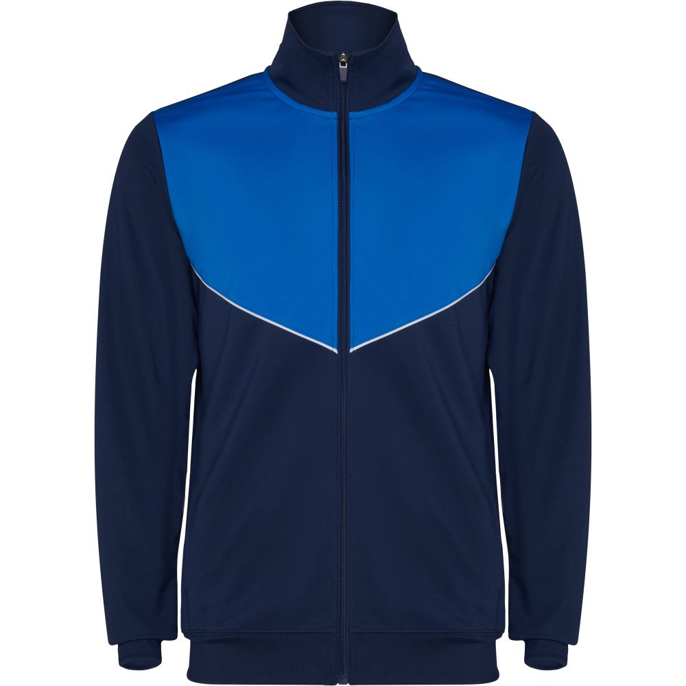Tracksuit in lightweight and elastic fabric. Jacket with contrasting colour and sewing trims on chest. High collar with contrasting seams. Central front zip. Side pockets. 2x2 ribbed cuffs and waist. Trousers with elastic waistband and drawstring. Contrasting side piece with sewing trim. Zipped hem. Interlock knit of 100% Polyester, 225 g/m2.