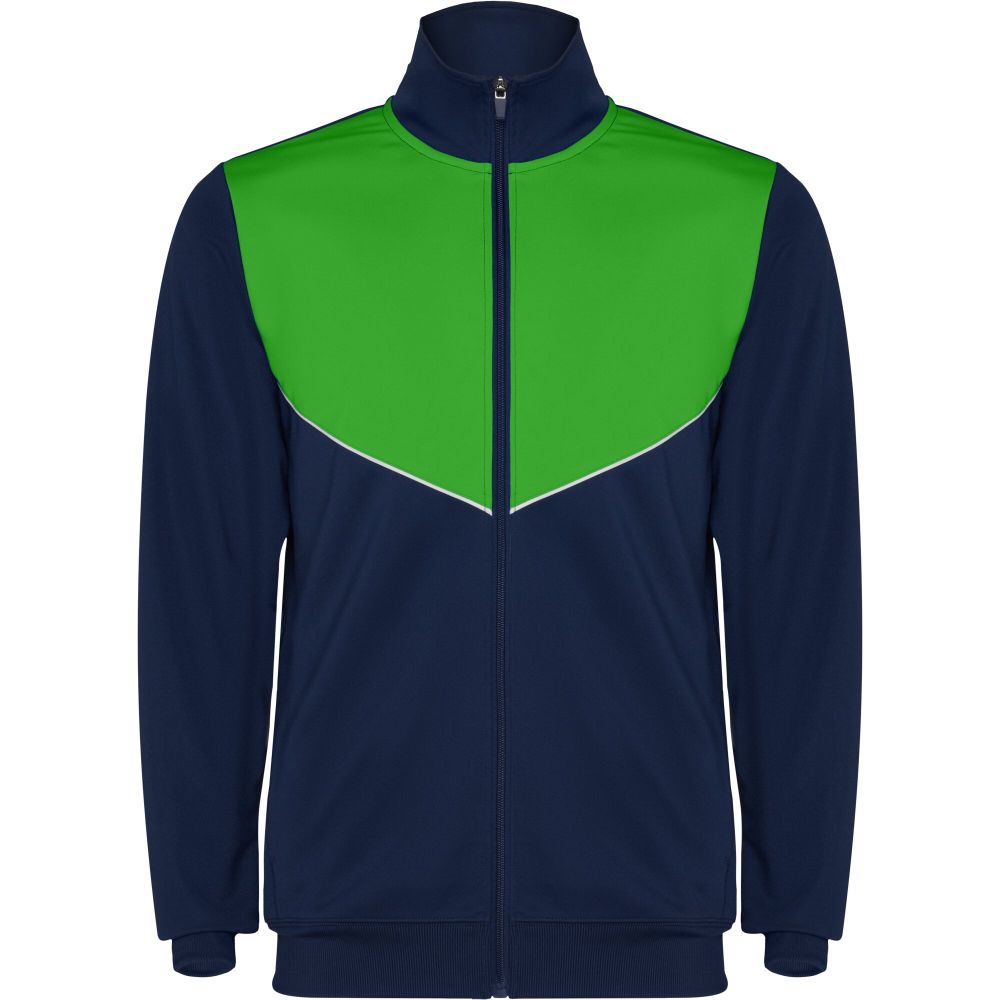 Tracksuit in lightweight and elastic fabric. Jacket with contrasting colour and sewing trims on chest. High collar with contrasting seams. Central front zip. Side pockets. 2x2 ribbed cuffs and waist. Trousers with elastic waistband and drawstring. Contrasting side piece with sewing trim. Zipped hem. Interlock knit of 100% Polyester, 225 g/m2.