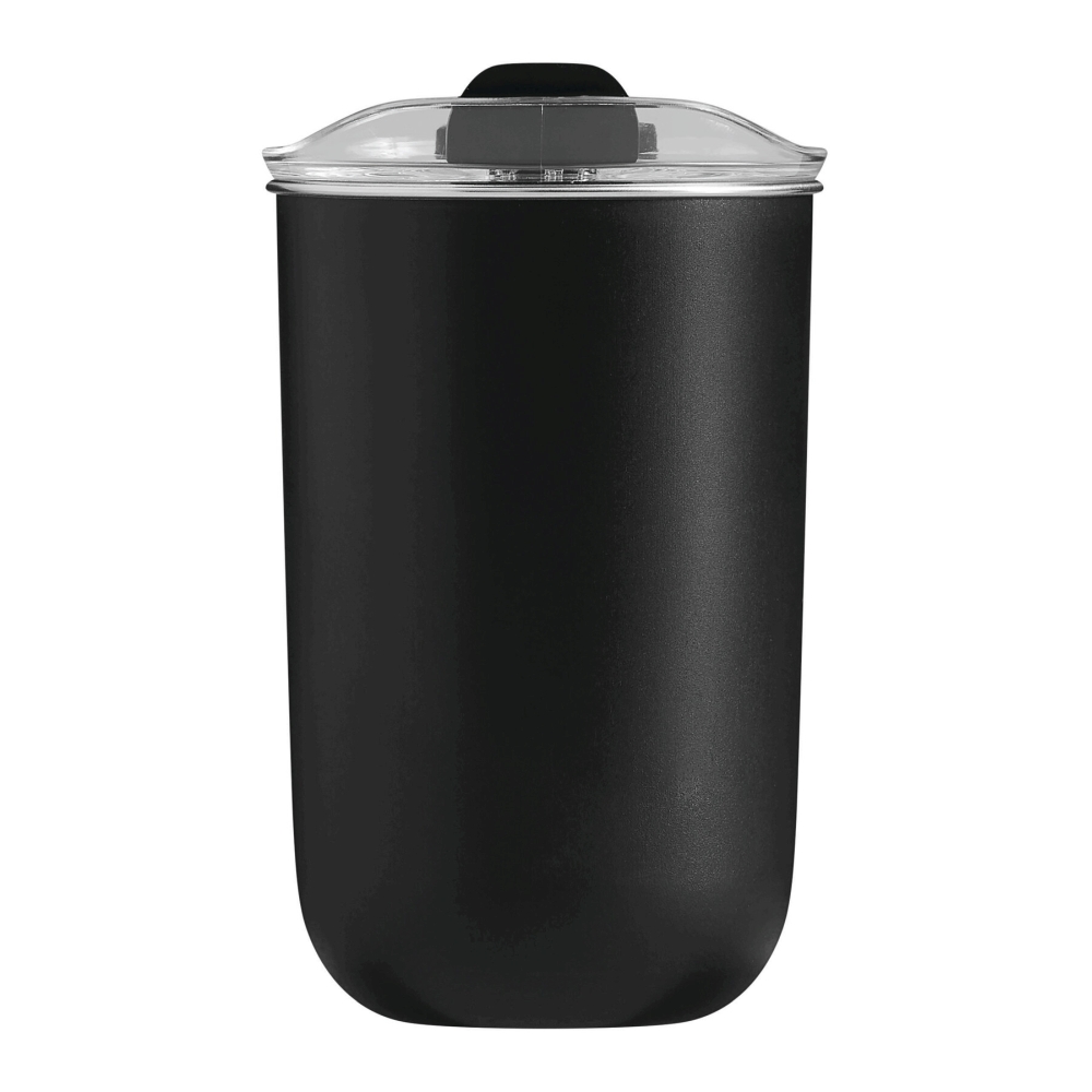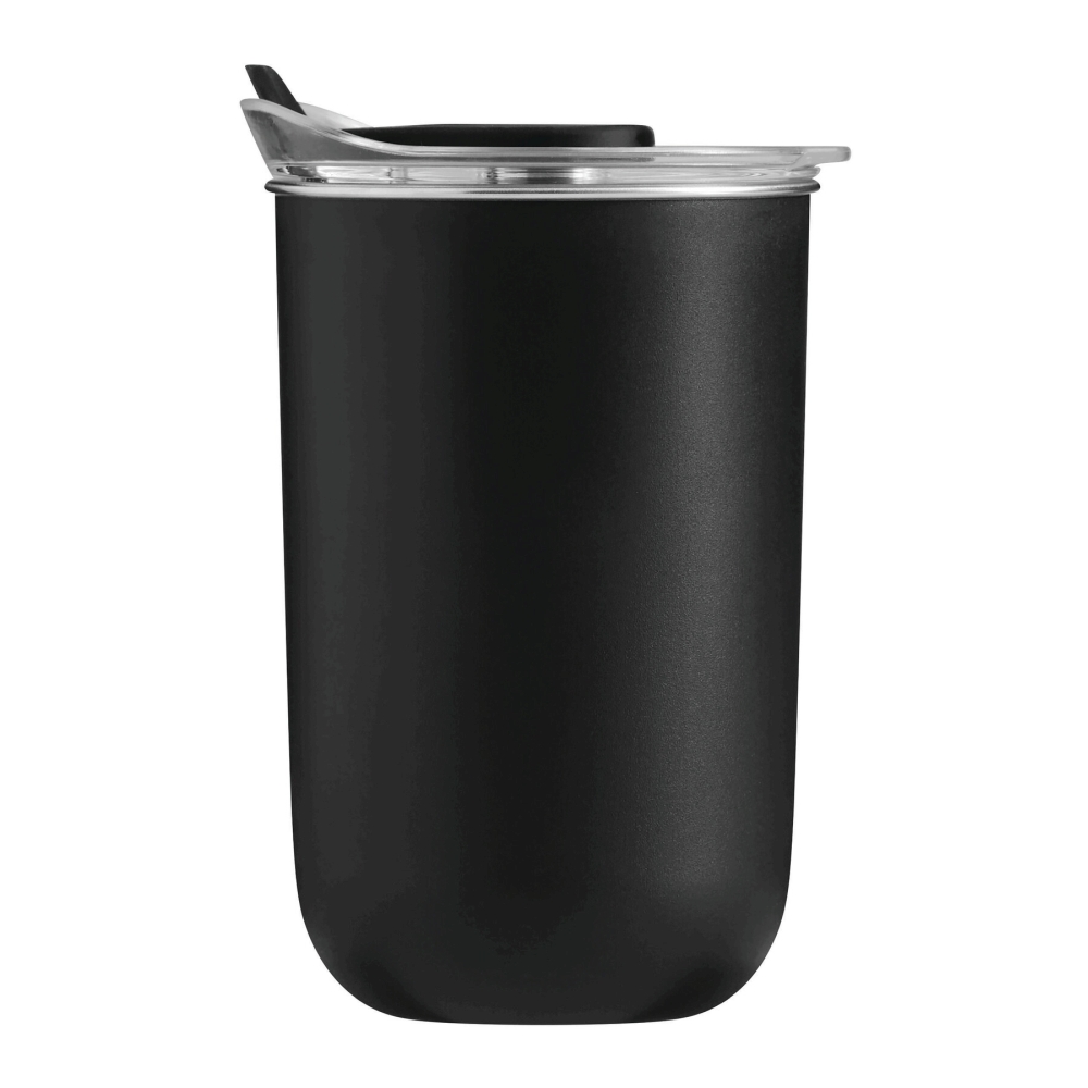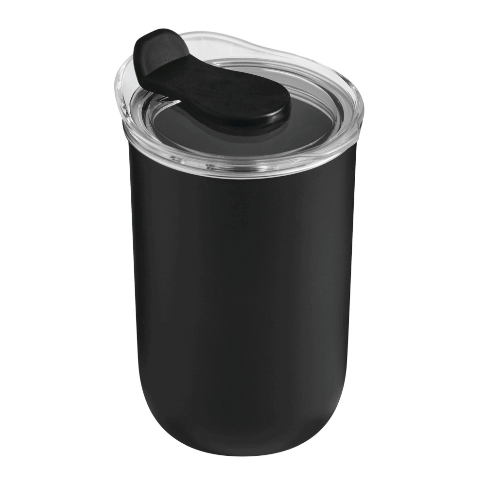 Insulated mug, double-walled: inside made of stainless steel, outside made of plastic, plastic lid with silicone sealing ring and integrated drinking opening (with silicone cover), capacity approx. 350 ml, keeps warm for approx. 2 hours and cold for up to 4 hours, in a box. Dimensions: O7,7 x 13 cm