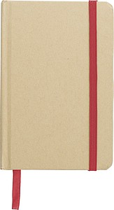 Recycled kraft notebook (A6) with 160 lined pages. With elastic to keep closed and a ribbon marker.