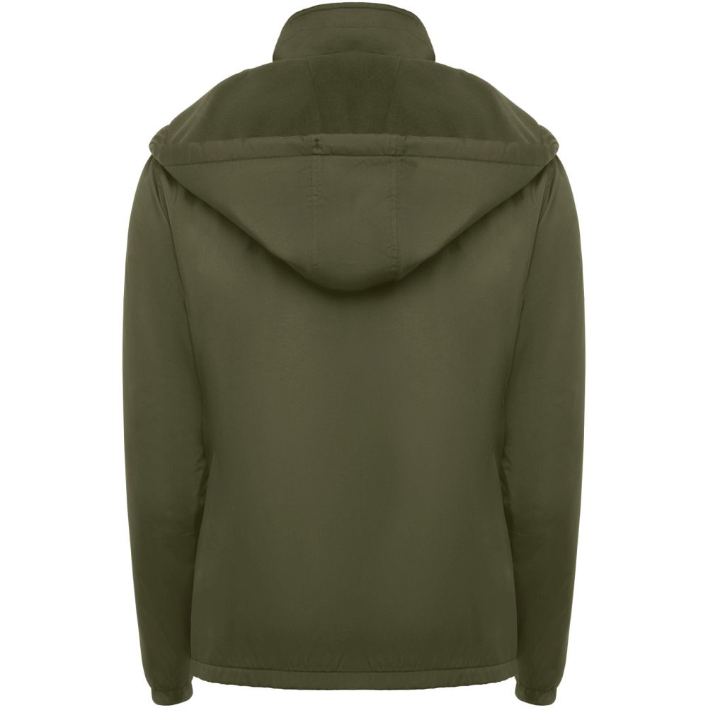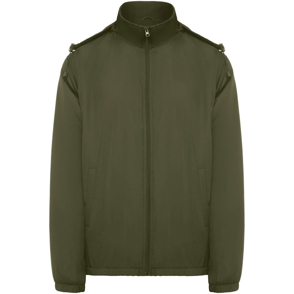 Light waterproof jacket. High collar and foldable hood with adjusters. Microfleece lining. Front zip and chin protector. Elastic cuffs. Two side pockets with zip. Interior left chest pocket. Removable label. Waterproof. Wind-proof. The male model is 184 cm and is wearing size L, and the female model is 174 cm and is wearing size S.