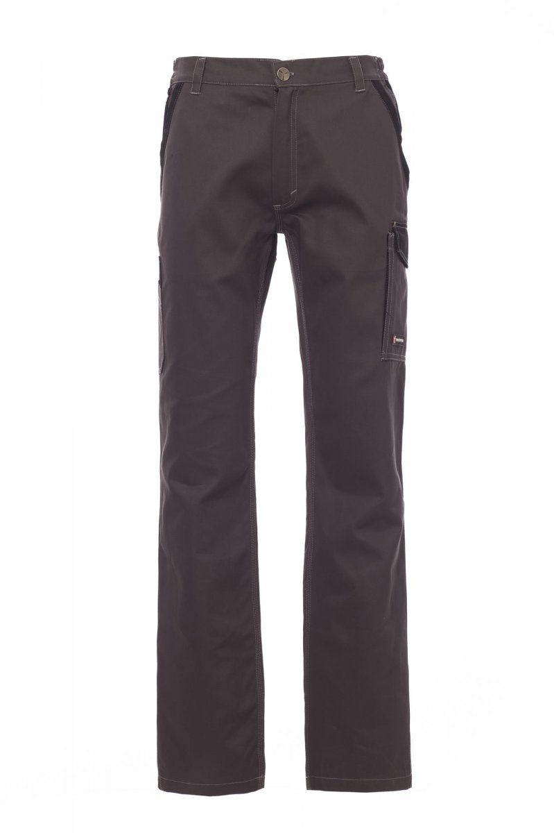 Multi-season unisex trousers with side elastic and waist belt loops. Zip fastening with metal button, two classic front pockets and a zip pocket, a LOCK SYSTEM side pocket, a double tape measure pocket on the left side, two back pockets, one open and one with flap and Velcro. Contrasting inserts and stitching, reflex stripes on the back pocket, triple seams on the inner leg. 100% cotton, 265 gr/mq.