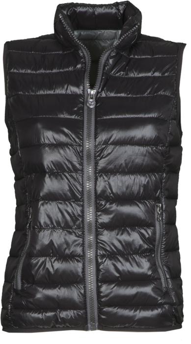 Women’s vest in quilted nylon, polyester feather effect, SBS effect metal zip, two external pockets, grey interior with contrasting trim, double inside pocket. 100% nylon. Sizes: S-M-L-XL.