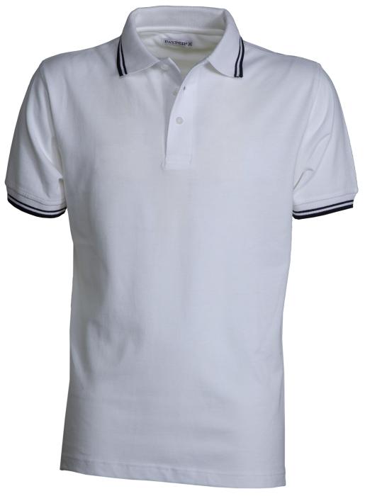 Short sleeve mens polo shirt with three white buttons, collar and sleeve edge with fine contrasting trim, ribbing on sleeve edges, side vents, concealed stitching on collar and reinforcement tape on both sides. 100% cotton piqué, 210 gsm. Sizes: S-M-L-XL-XXL-XXXL.