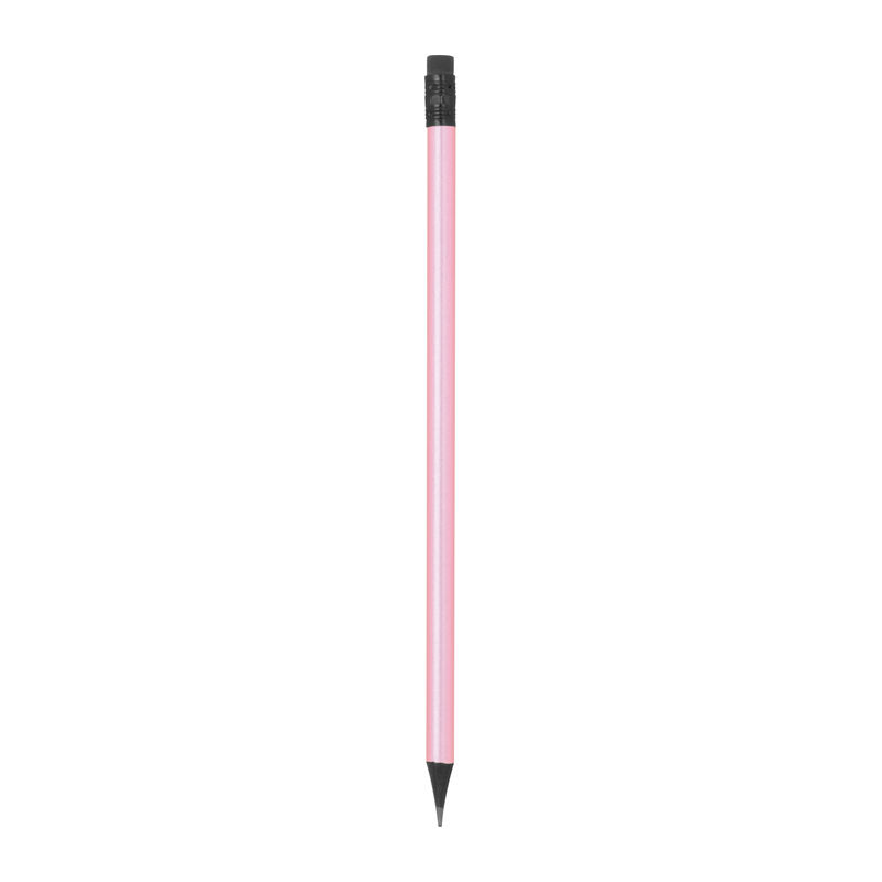 Pencil with eraser in metallic colors. The pencil comes pre-sharpened. Your logo will be placed on the pencil. Dimensions: o 0,7 x 18,8 cm