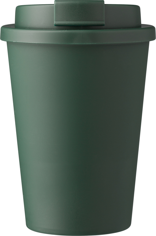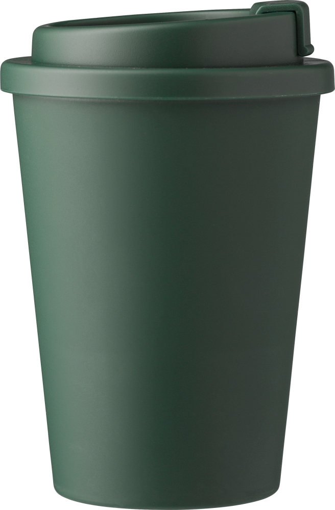 PP to go mug (350 ml) with screw lid. With lockable drinking opening. For both hot and cold liquids. Dimensions: 9,3 x 13,9 cm