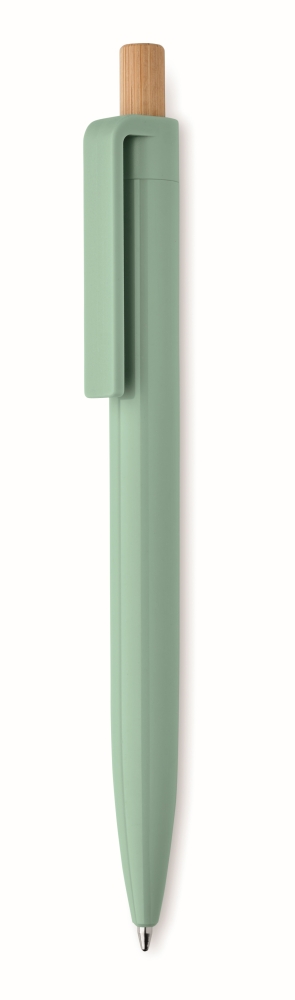 Ball pen in recycled ABS with bamboo push button. Blue ink. Dimensions: 13,4 x 1,5 x 1,1 cm