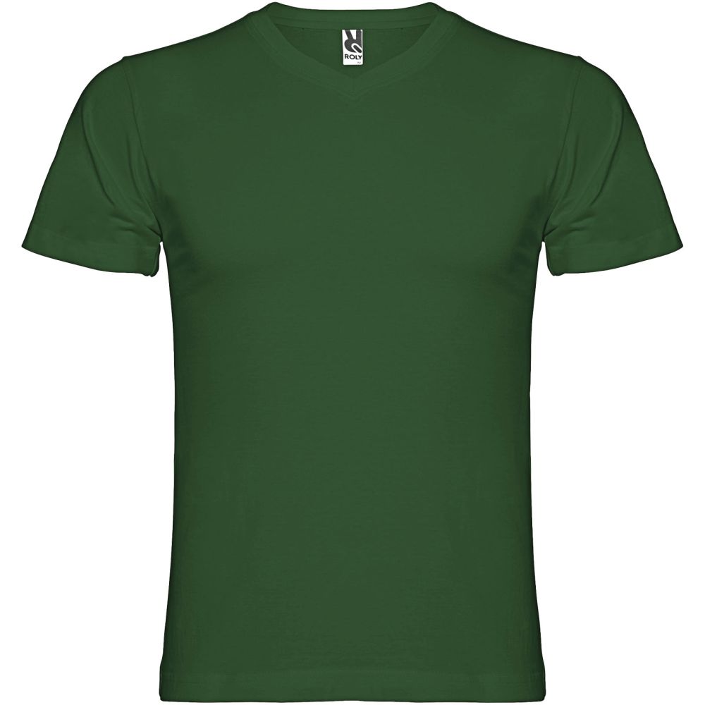 Tubular short-sleeve t-shirt with 2-layer v-neck. Reinforced covered seams in collar and shoulders. Removable label. The model is 190 cm and is wearing size L. Single Jersey knit of 100% Cotton, 155 g/m2.
