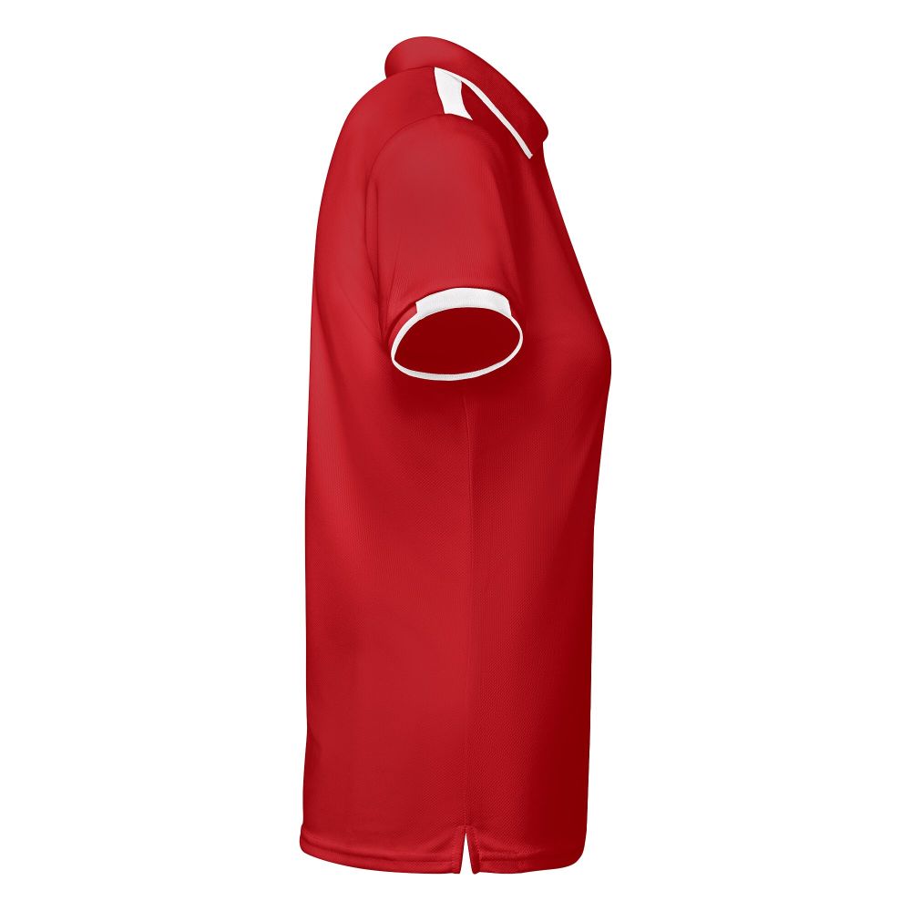 Antibacterial recycled polyester fabric. 1x1 ribbed collar and detail in sleeves. Reinforced covered seams in collar. Placket with 2 concealed clasp buttons. Contrasting details and shoulders. Side slits on hem. Removable label. Piqué knit with cool fit finish of 50% Recycled Polyester and 50% Polyester, 140 g/m2.
