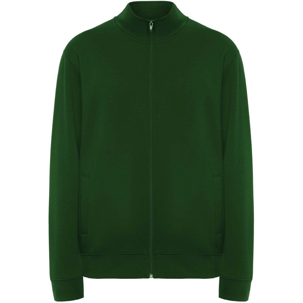 High collar sweater with matching zip. Matching inner collar with reinforced covered seams. 1x1 ribbed fabric in cuffs and waist. Removable label. The male model is 185 cm and is wearing size L, and the female model is 168 cm and is wearing size S.