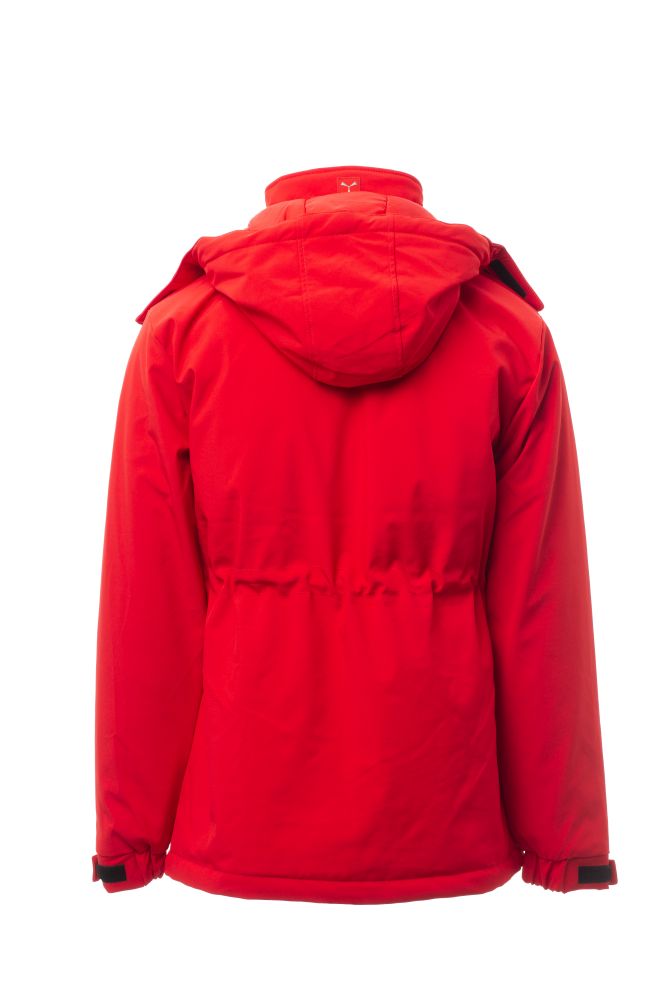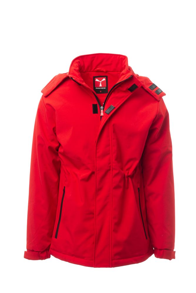 WP 8000 mm H2O, WVT 5000 g/m2 24h. Men’s padded soft-shell, with Velcro closure and zip with "semi-auto lock" metal slider and customised pull. Detachable hood, closable on the front with Velcro. Drawstring waist, two external pockets with coated zip, one internal welt pocket with Velcro fastening, one internal tablet holder pocket with Velcro fastening. Elasticated cuffs, adjustable with Velcro. Customised patch on the back of the neck, with retroreflective detail.