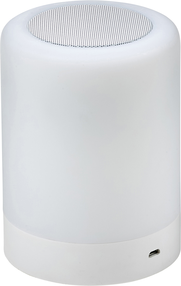 Wireless speaker which lights up with different colours. The three control buttons are at the bottom of the speaker. Input 5V/1A. Battery 3.7V/1500mAh. Speaker 3 Watt. Including a charging cable (USB - micro USB), 100 cm long.