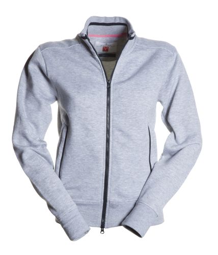 Women’s fitted sweatshirt with full, contrasting coloured plastic SBS zip with double metal pull. Rib collar with contrasting trim, side pockets with contrasting trim, fitted sleeves, two outer pockets with contrasting zip, stretch rib cuffs and hem, reinforced seams.